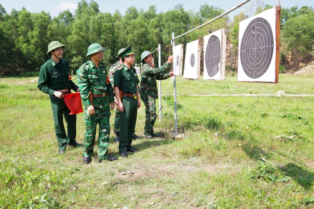 Đại tá Vũ Quốc Ân, Bí thư Đảng uỷ, Chính uỷ Bộ đội Biên phòng TP. Hồ Chí Minh tham quan và động viên cán bộ, chiến sỹ tham gia kiểm tra bắn đạn thật